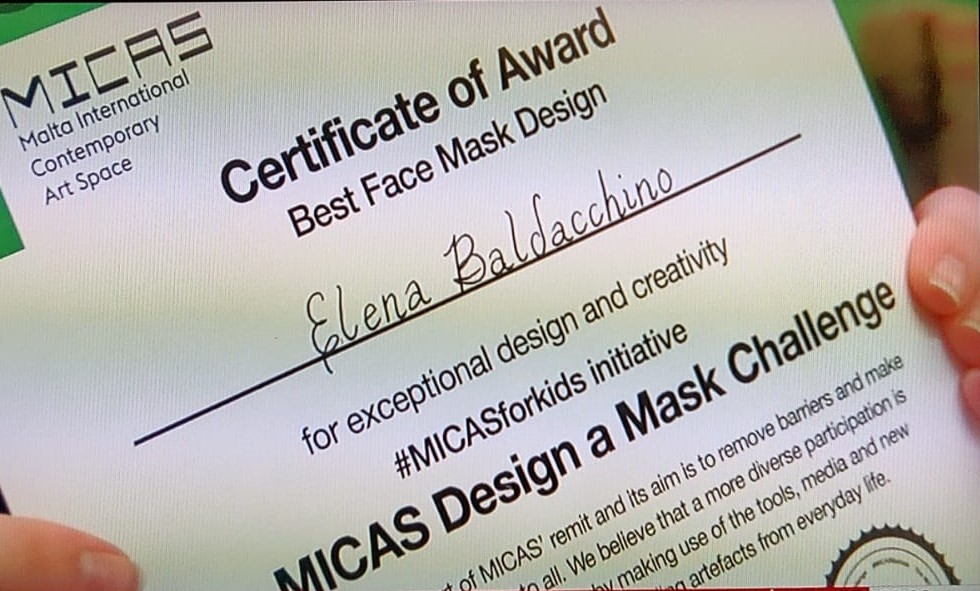 The winning result of Elena Baldacchino in the MICAS mask competition was featured on one news. Elena is here wearing the school uniform whilst giving a short interview about the experience.